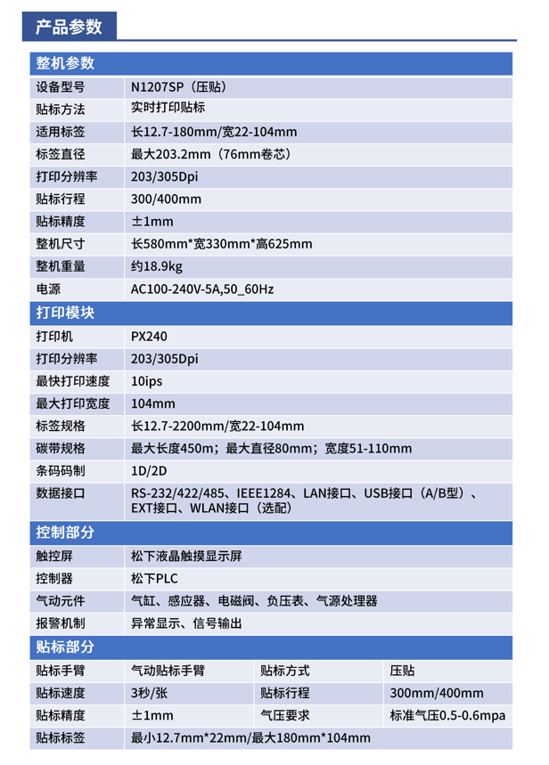 N1207SP 打印貼標機,基于工