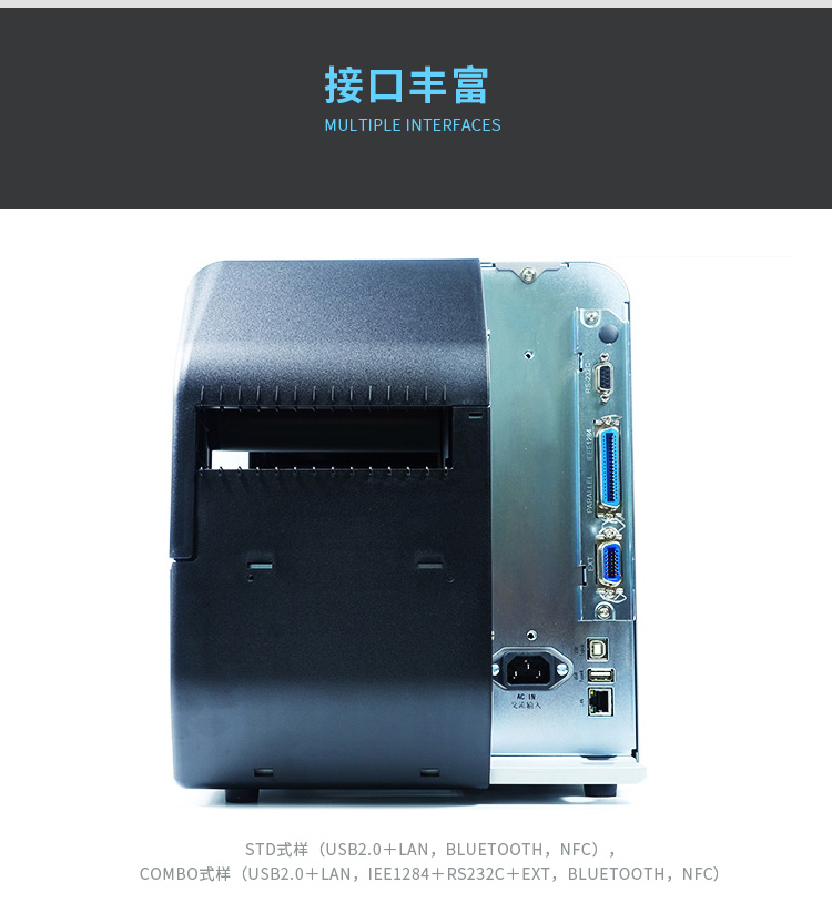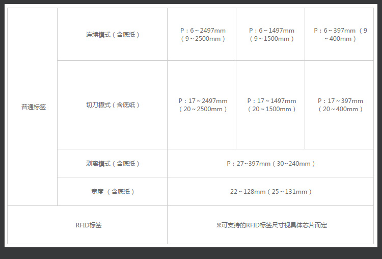 | 其它性能 | 打印模式:連續(xù)、撕紙、切刀、剝離 感應模式:間隙感應(穿透模式)、黑標感應(反射模式)、紙張用盡、碳帶用盡、碳帶即將用盡; LED指示器:藍/紅色 警報聲音:蜂鳴聲(3級音量) 自檢功能:打印頭、切刀開啟,待機,自動檢測 顯示屏:TFT全彩LCD,3.5"(320x240) 多語言支持:內置47種打印語言,30種LCD顯示語言 操作視頻預置:18個視頻(耗材安裝,部件更換,清掃,設置RFID天線) 遠程協(xié)議:SNMP ver3,HTTPs 構造:鋁壓鑄(底部,框架,前蓋,碳帶軸,打印頭裝置) 機身側蓋:省空間雙折疊式,含大視窗 底盤安裝:3孔固定,可平面或傾斜安裝 |