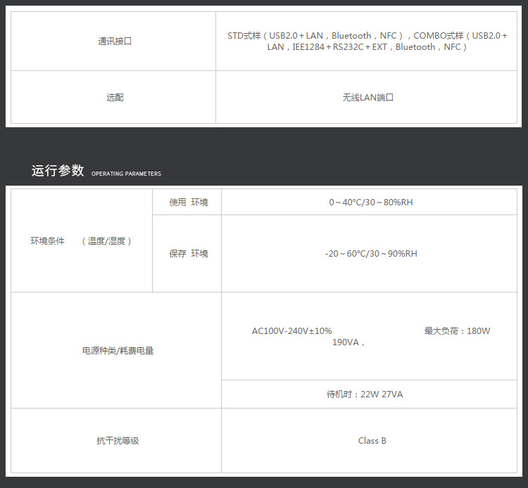 | 主要參數(shù) | 標配:USB2.0接口(Type A,Type B),Ethernet(IPv4/v6)(機身后面),USB2.0接口(Type A)(機身前面),RS-232C,IEEE1284,EXT(標準接口板),Bluetooth Ver3.0 選配:Wireless LAN kit(Wi-Fi and CCX認證),IEEE 802.11a/b/g/n,雙頻(2.4GHz,5GHz),100MB,22-128mm,0.06-0.268mm,雙CPU&雙操作系統(tǒng) CPU1:2GB ROM,256MB RAM for Linux操作系統(tǒng) CPU2:4MB ROM,64MB RAM for ITRON操作系統(tǒng),600m,39-128mm,25mm,工商用打印機 |